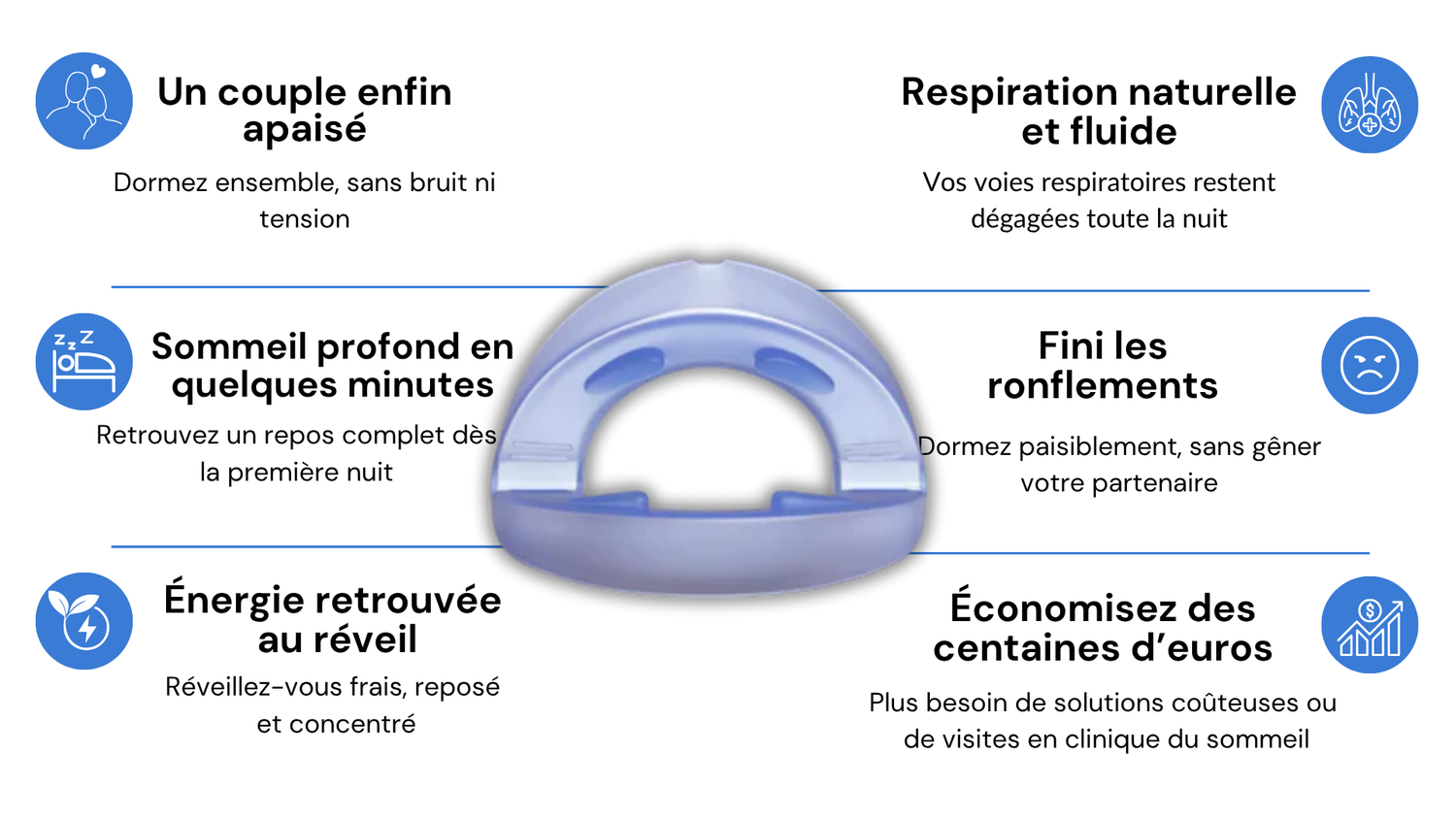Il maintient légèrement la mâchoire inférieure avancée pour garder les voies respiratoires dégagées et réduire les vibrations responsables du ronflement.